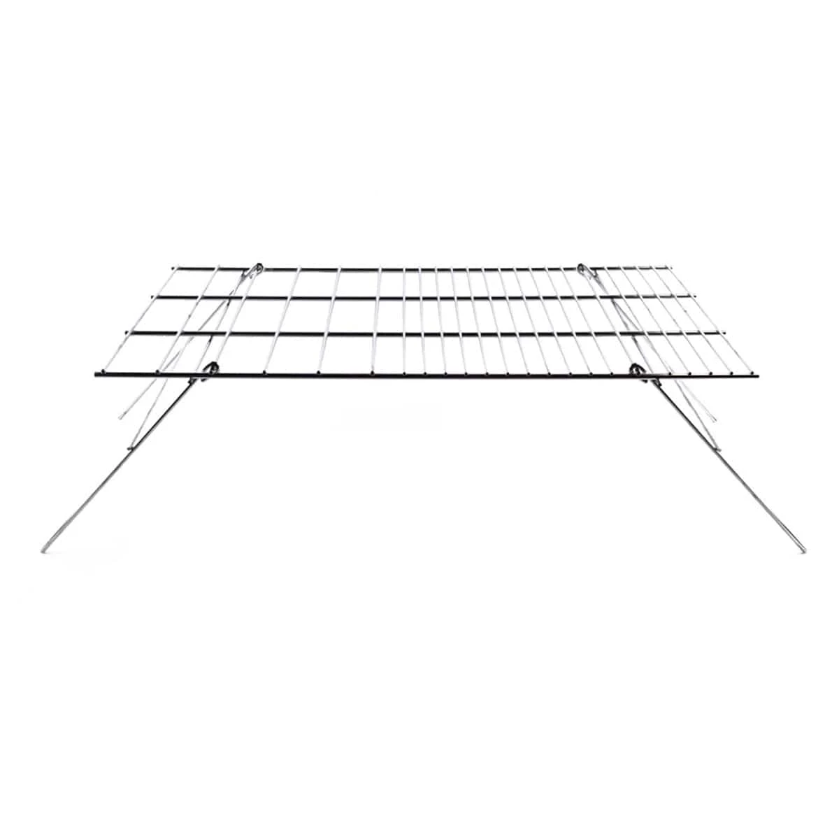 Coghlan’s Camp Grill is a mid-sized, heavy-duty, nickel-plated steel grill that can support a variety of cookware sizes. The grill surface measures 12 inches by 24 inches and is suitable for use with cookware or direct contact with food (FDA approved). The legs fold flat for easy storage, making it ideal for open-fire cooking at camp.