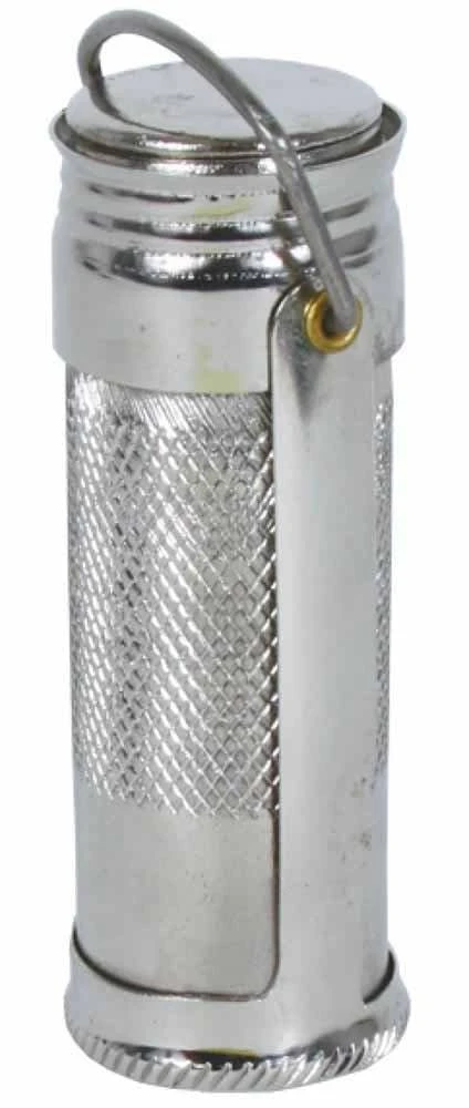 Keeps matches dry and ready to use. Made of seamless nickel plated brass. Ring for fastening to belt, snap or chain.