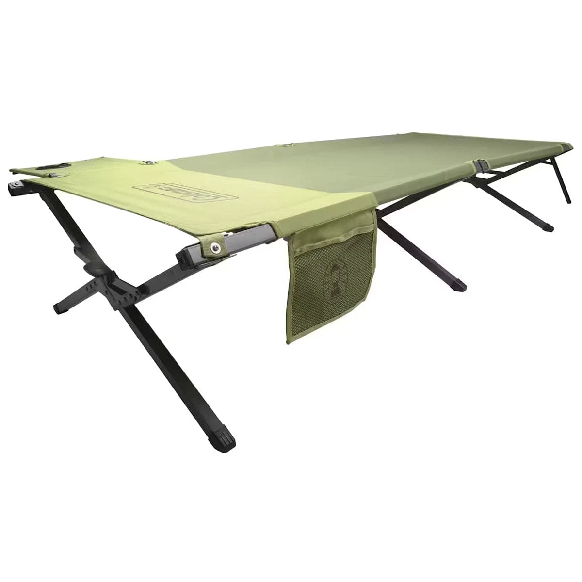 With the Coleman® Trailheadâ„¢ Easy-Step Camping Cot, drifting off to sleep in comfort has never been easier. The military-style cot uses an innovative step lock to secure the frame in place, and its rugged steel x-frame’s durability is guaranteed for years of use. Keep your water bottle, phone, or reading material on the removable side table with cup holder, and store essentials, such as gloves or a flashlight, in the side pocket.