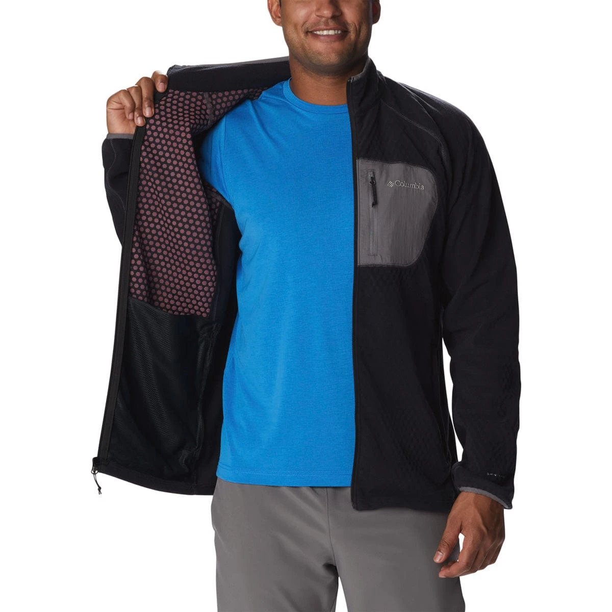 Performance heat cells in this full-zip fleece layer help manage heat for cold-weather activity.