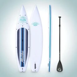Pau Hana Malibu Tour 11’6″ VFT Beginner Touring Paddle Board – White/Blue Durable Displacement SUP
