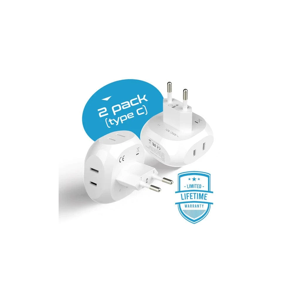 Never run out of power while exploring with the PT-9C 4-in-1 Europe Travel Adapter Set. Designed in the USA for maximum efficiency, this ultra-compact 2-pack ensures you and your travel companions stay connected across the continent.