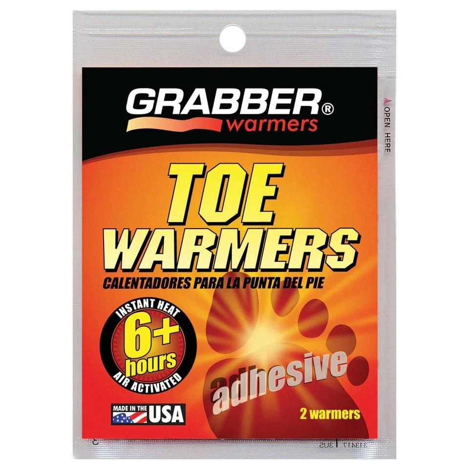 The perfect everyday solution for keeping feet and toes warm. Ultra thin, rounded toe warmer with adhesive strip will ensure a secure and comfortable fit all day. Grabber Toe Warmers are designed to function in the low oxygen environment of boots and shoes. The warmer is odorless, clean, dry, non-toxic, non-flammable, and biodegradable. No shaking or kneading required; simply open package and stick to sock, either under or over your toes for all day warmth. Grabber Warmers is a recommended product by the National Ski Patrol.