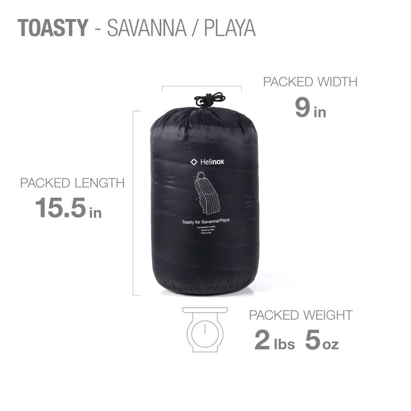 Designed for wrapping up warm and watching the stars. The Toasty has an integrated hood and attached wings to wrap around for deluxe comfort. This Toasty is specifically meant to be used with the Helinox Savana or Playa Chairs.