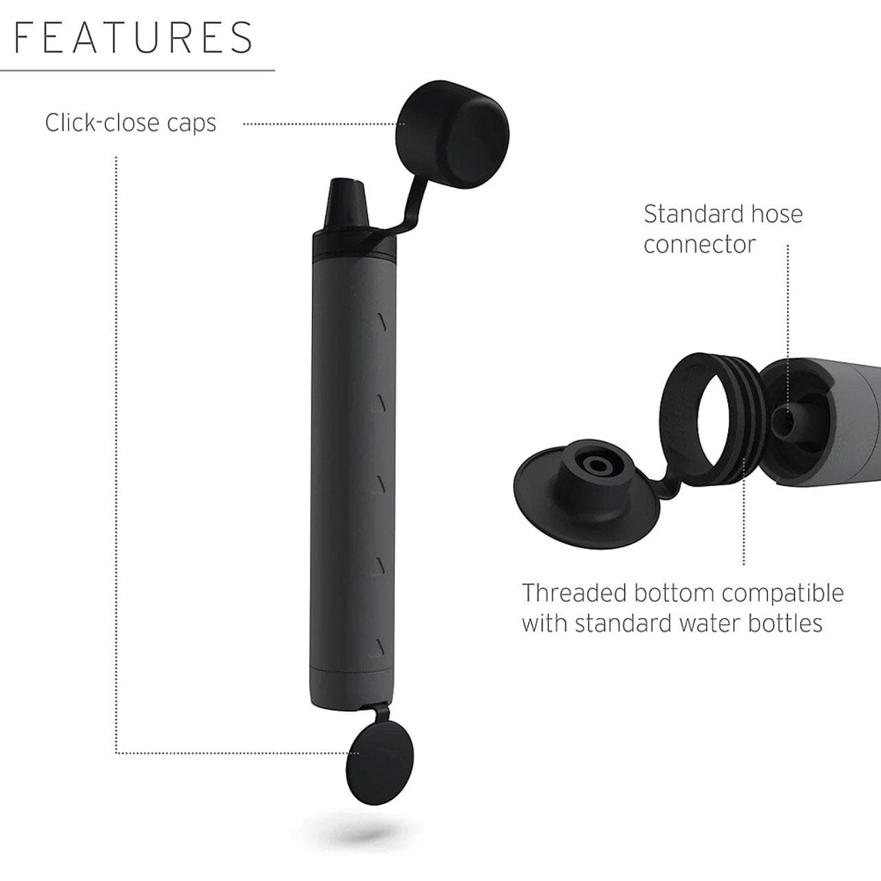 - Versatile Utility: Removable threaded bottom cap allows for attachment to gravity systems or standard plastic water bottles.
