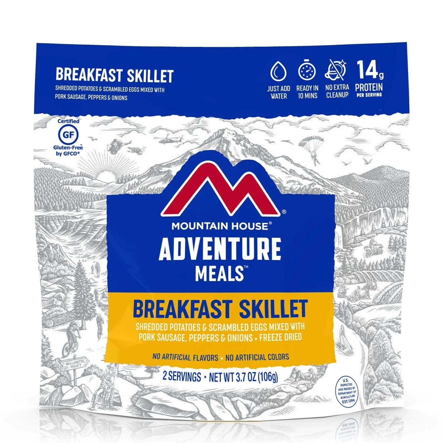 Filling hash browns, savory sausage, tasty veggies, and scrambled eggs all team up to make the legendary Mountain House Breakfast Skillet. Bursting with flavor and protein, it’s no wonder this is one of our most popular breakfast items for fueling explorers everywhere.