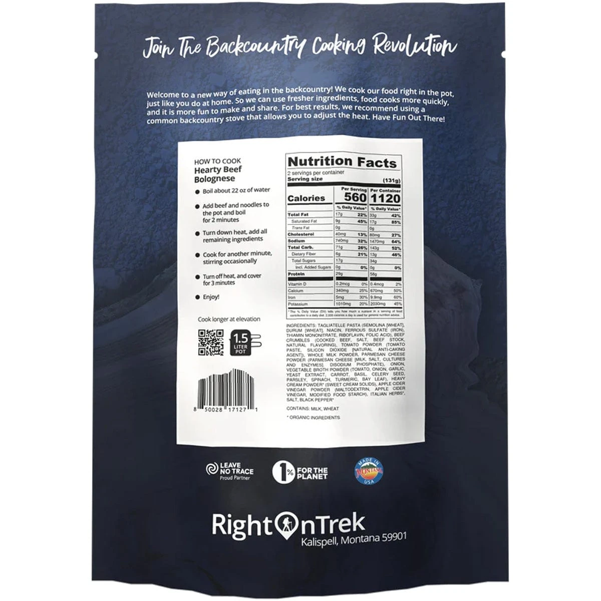 Tagliatelle pasta (semolina [wheat], durum [wheat], niacin, ferrous sulfate (iron), thiamin mononitrate, riboflavin, folic acid), beef crumbles (cooked beef, salt, beef stock, natural flavoring), tomato powder (tomato paste, silicon dioxide [natural anti-caking agent]), whole milk powder, parmesan cheese powder (parmesan cheese [milk, salt, cultures and enzymes], disodium phosphate), onion, vegetable broth powder (tomato, onion, garlic, yeast extract, carrot, basil, celery seed, parsley, spinach, turmeric, bay leaf), heavy cream powder* (sweet cream solids), apple cider vinegar powder (maltodextrin, apple cider vinegar, modified food starch), italian herbs*, salt, black pepper*.