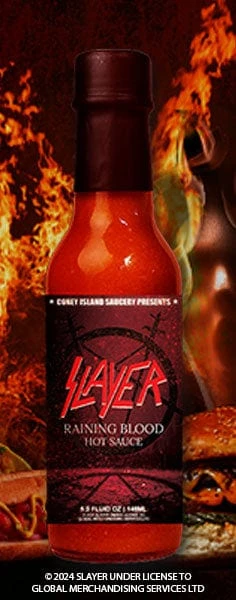 Slayer, the iconic heavy metal band, has unleashed a fiery concoction known as “Raining Blood” hot sauce, a tribute to their legendary song of the same name. This scorching sauce lives up to its brutal name, boasting a blend of some of the world’s hottest peppers, sure to send a scorching surge through your taste buds. The intense heat of “Raining Blood” will take you on a headbanging journey of extreme spiciness, leaving even the boldest heat seekers gasping for relief. Just like Slayer’s relentless and aggressive music, this hot sauce packs a merciless punch, making it a must-have for thrill-seeking chili lovers and metalheads alike. Prepare to embrace the inferno and let the relentless heat of “Raining Blood” take you to the edge of sensory chaos.