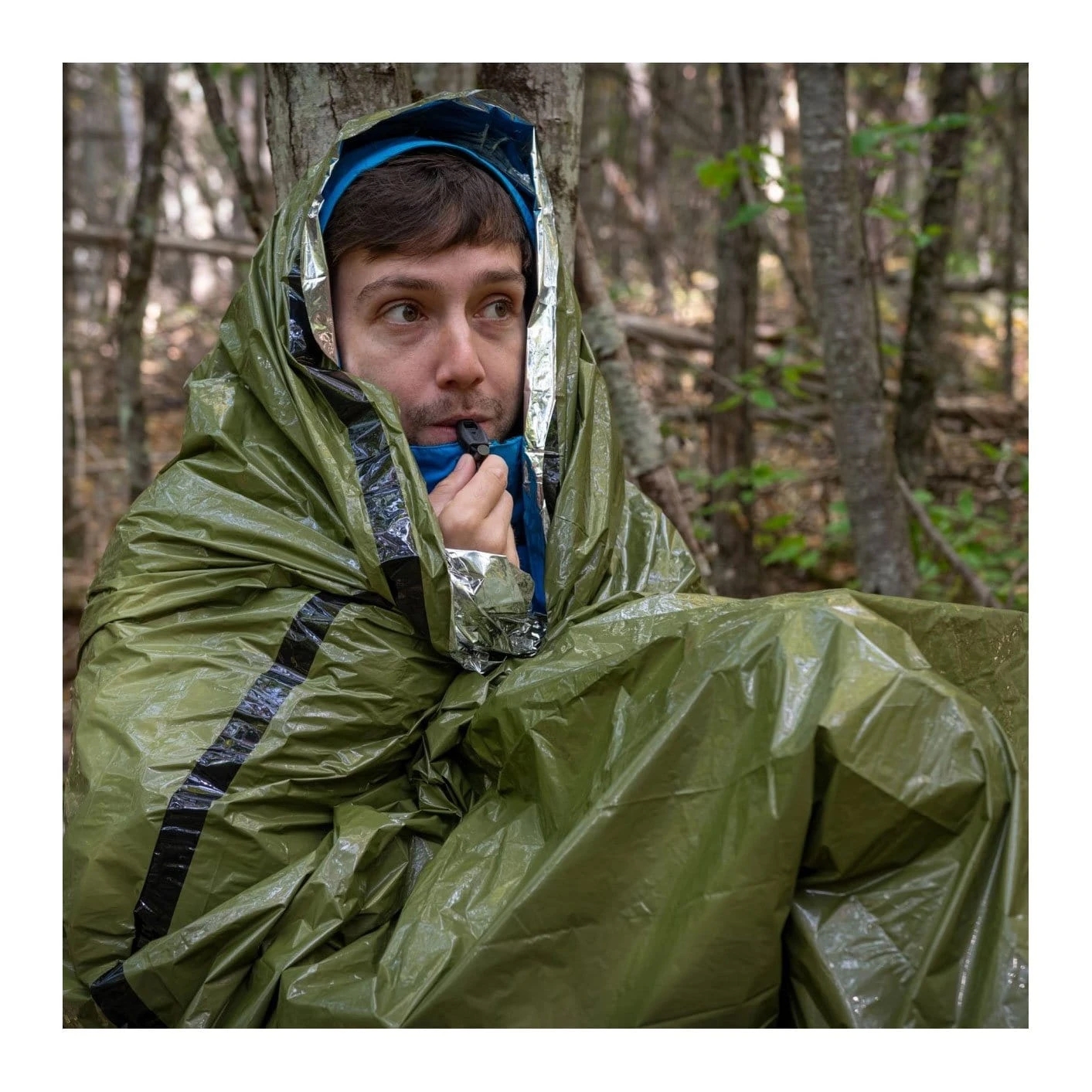 Take this compact bivvy bag camping, hiking, or biking for an emergency shelter you can rely on — it weighs under 4 oz. and is smaller than a 12 oz. soda can. - Survival Whistle & Tinder-Cord