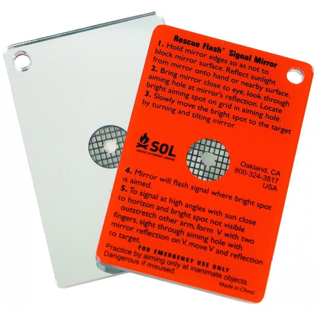 An essential in any emergency kit, the lightweight and shatterproof SOL Rescue Flash® Floating Mirror can be seen up to 10 miles away. This ultra-bright signaling tool has a reflective aimer so you can easily use it with one hand. Designed to float, feel secure using this on water and attach it to your gear or PFD through the attachment hole. The Rescue Flash® Floating Mirror is easy to pack and easy to use in an emergency.