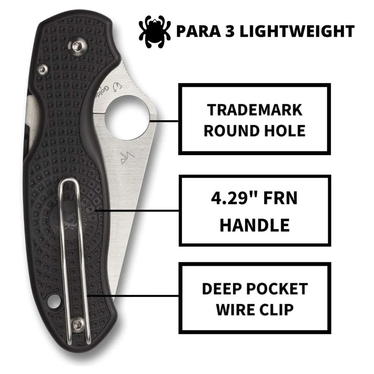 Available with a choice of PlainEdgeâ„¢ or fully serrated SpyderEdgeâ„¢ cutting edges, the blade features a fully accessible Trademark Round Holeâ„¢ for quick, one-handed opening with either hand. A generously sized lanyard hole and a reversible deep-pocket wire clip round out its impressive features, providing discreet left or right-side tip-up carry and allowing the easy attachment of fobs or lanyards.