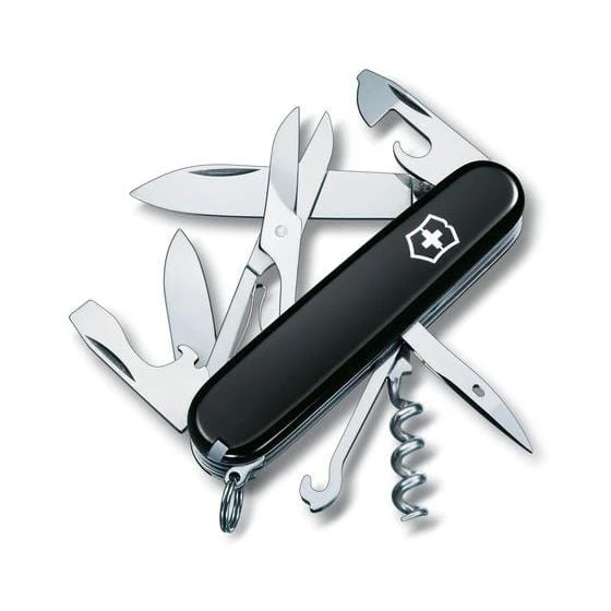 Welcome to the world of the Officer’s knife. This is where the legend of the Swiss Army Knife began. And it continues today with the Climber pocket knife. Its 14 functions are as sharp, strong and intuitive as you need them to be. So no matter if you’re climbing up the corporate ladder or a class 5 crag, the Climber is with you all the way to the top.