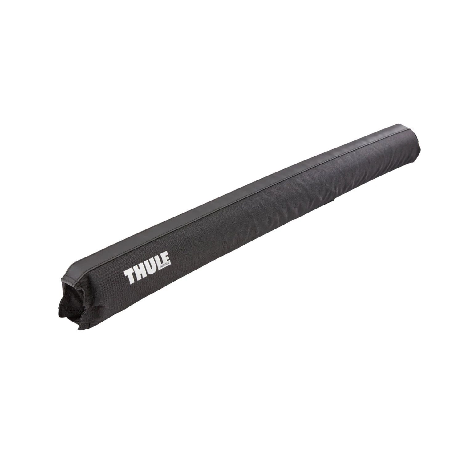 Featuring a sleek black finish with high-visibility white Thule branding, these pads are crafted from rugged 600D nylon. The material is specifically treated for UV resistance, preventing fading and degradation even under intense sun exposure. The integrated no-slip grip on the top surface ensures your boards stay centered and secure during transit.