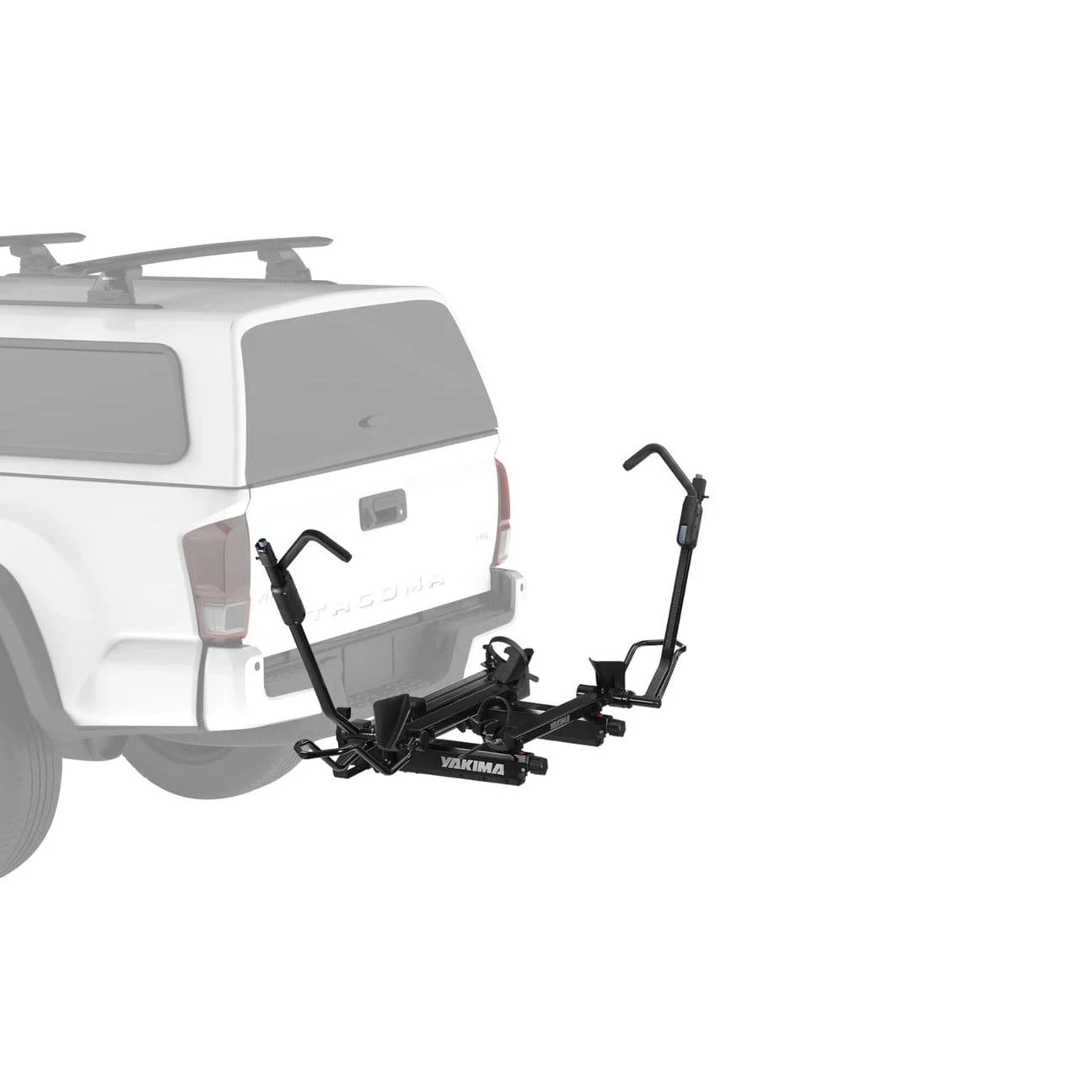 Take your bikes further with the Yakima EXO DoubleUp. Designed to integrate seamlessly with the EXO SwingBase or TopShelf, this heavy-duty 2-bike carrier handles everything from fat tires to carbon road frames without touching the paint.