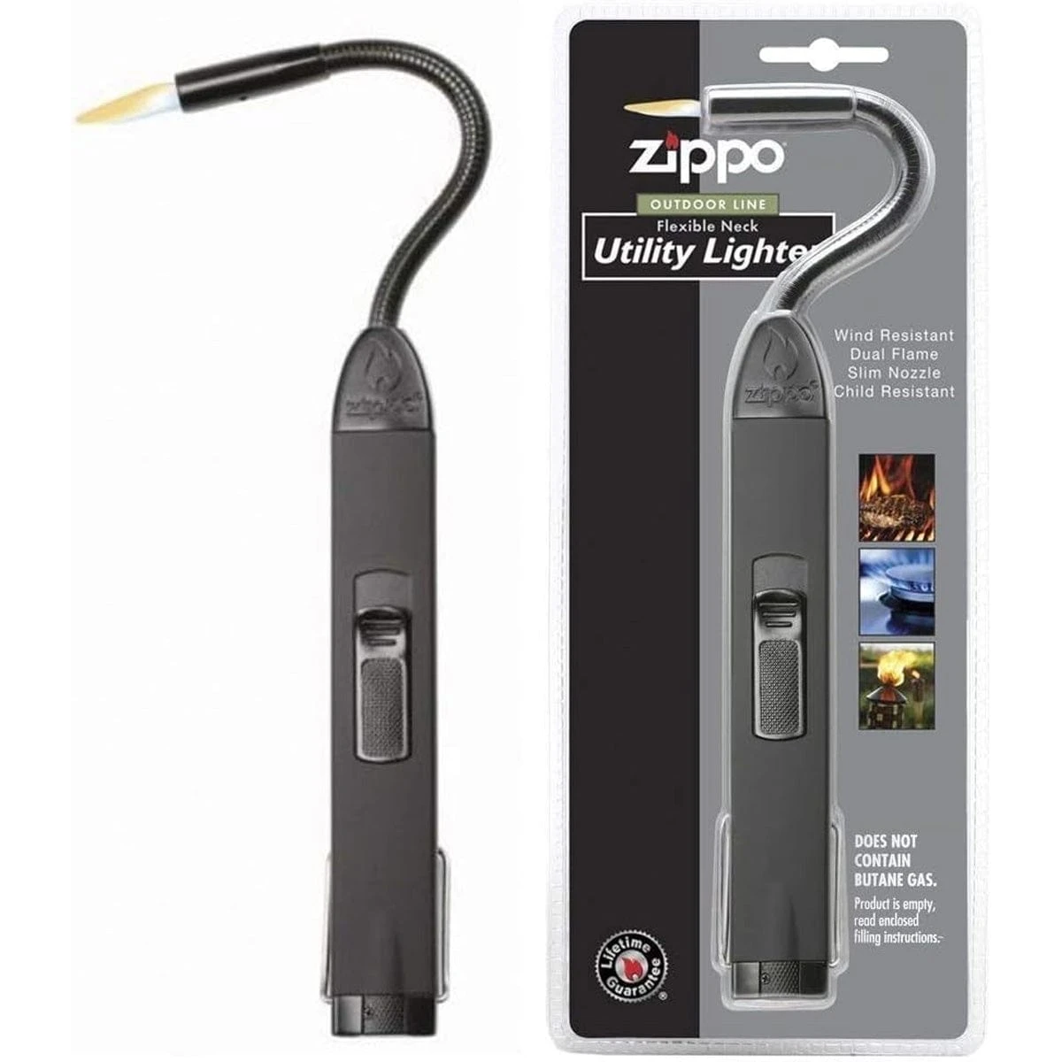 There’s no better way to get fires started in a stiff wind. Dual-flame technology keeps the flame burning strong, and a flexible neck precisely positions the heat in any direction. The narrow gauge head is small enough to reach into tight spots in lanterns and camping stoves. They’re great for lighting candles, BBQ grills and more. Sturdy, all metal construction. For optimum performance, use Zippo butane fuel. Comes packaged in a blister pack.
